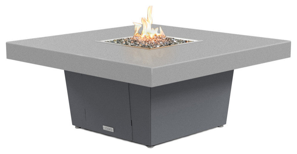 Square Fire Pit Table, 48x48, Chat Height, Natural Gas, Hilltop Grey Top, Gray