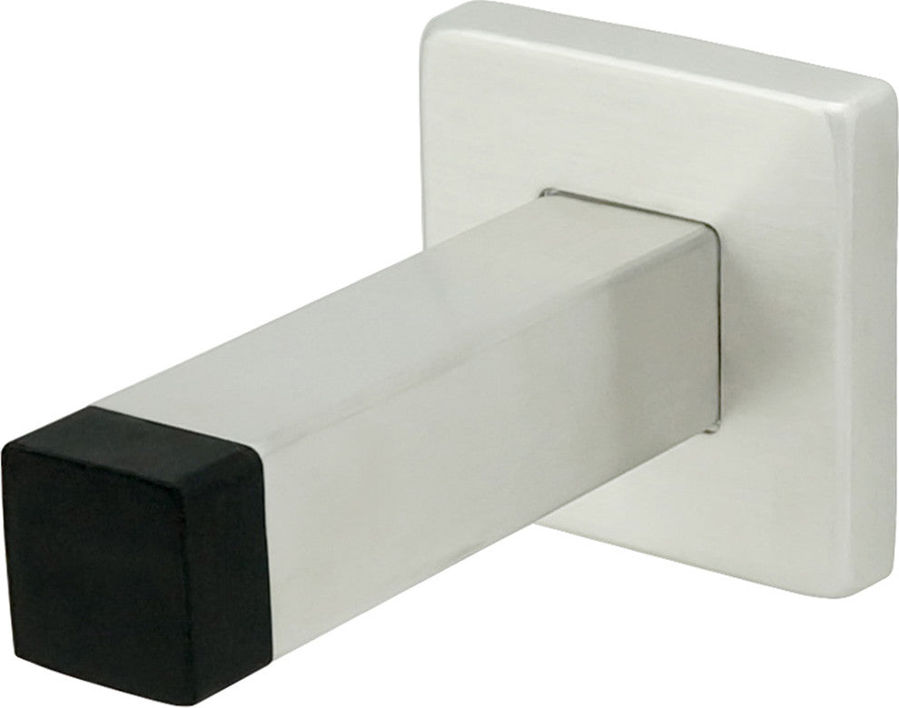 Door Stop DSIX14, Square Shape, 3-5/32" High, 3/4" Square, 1-53/64" Base, Wall Mount, Satin Stainless Steel (US32D/630)Sleek, modern designStainless steel with durable rubber tipIdeal for residential or light-commercial useAlso available in beautiful Polished Stainless Steel finishWall mount with anchor, stainless steel fasteners