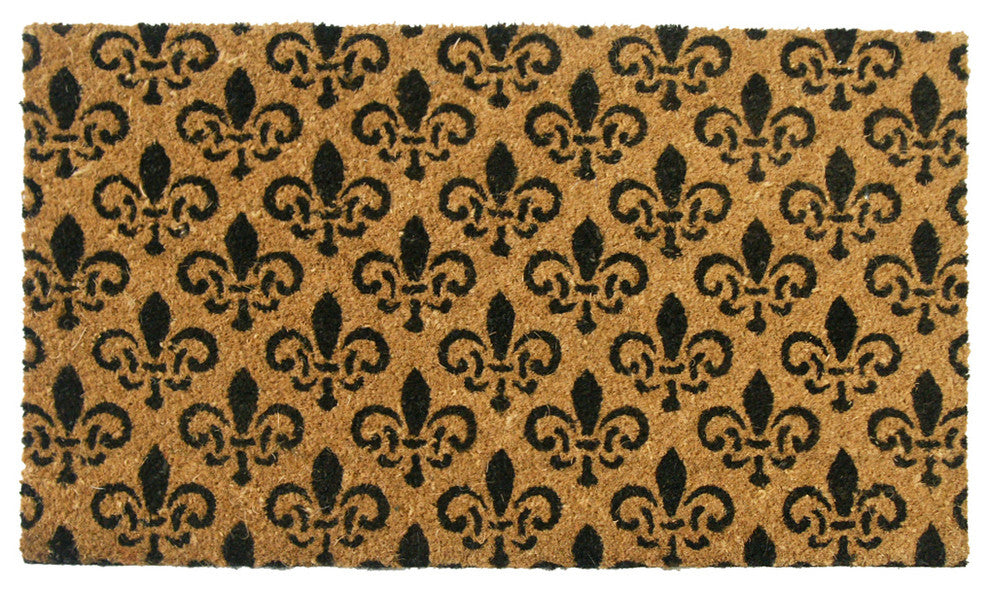 Rubber-Cal''s "St. Germaine" Fleur de Lis Door Mat is an elegantly designed surface for any front door. It is both a natural and classic look for those who wish to make an impression. This reliable coir matting contains a sophisticated pattern, is an eco-friendly alternative, and can withstand the pressures of daily wear and tear. Lined with a PVC backing, these French door mats have a charming pattern of fleurs de lis across the surface. With a naturally-colored brown coir background, this product will provide a cultural appeal to your doorstep. Not only are these welcome mats branded by the French emblem, but they are also made of natural coir fibers derived from the husks of coconuts. This fibrous material is produced through an eco-conscious process of husking and extracting. It has very little impact on the environment as a lot of this is done by hand. The natural color of the coconut fibers is allowed to come through in the backdrop of this coir matting. In addition to their eco-friendly production, these welcome mats are extremely reliable due to the durability of the fibrous material. Acting as a scraping surface, excess particles and liquids from incoming foot traffic are attacked before they enter your home. This product can endure through the wear of feet and weather with mold and mildew resistance. The "St. Germaine" Fleur de Lis Door Mat is able to serve multiple purposes at your front door. It''s an attractive decoration and an environmentally friendly surface that can provide scraping action that will endure through all seasons. It will fit perfectly at your front door and is available in two ideal sized at a thickness of 5/8-inch. For a culturally sound and sophisticated look, get one of our French door mats today!