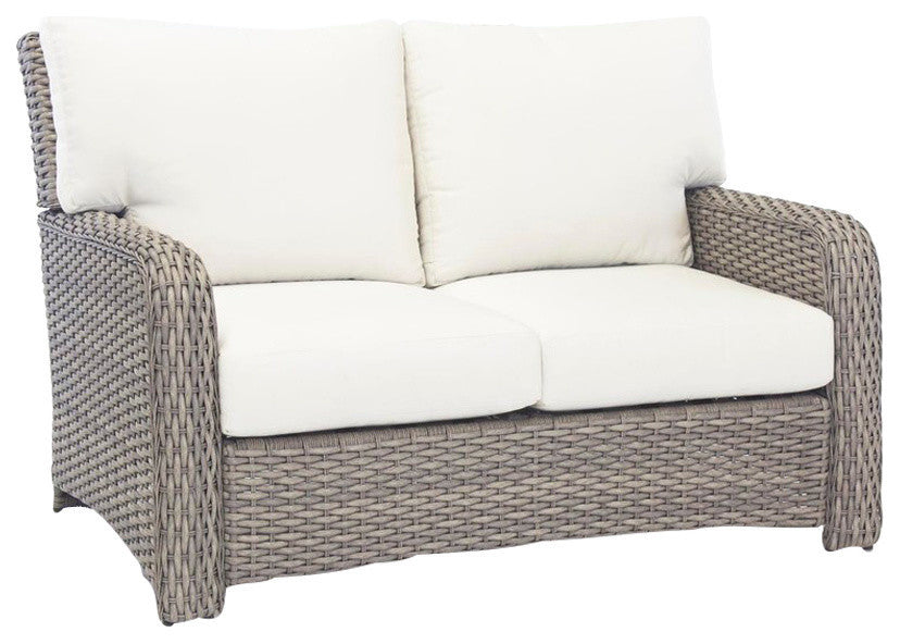 Timeless appeal and clean, modern aesthetic come together in the perfectly proportioned Saint Tropez collection. The smooth, flat-weave synthetic wicker is woven over durable, rustproof aluminum framing. Fabric swatch is shown in the second image.