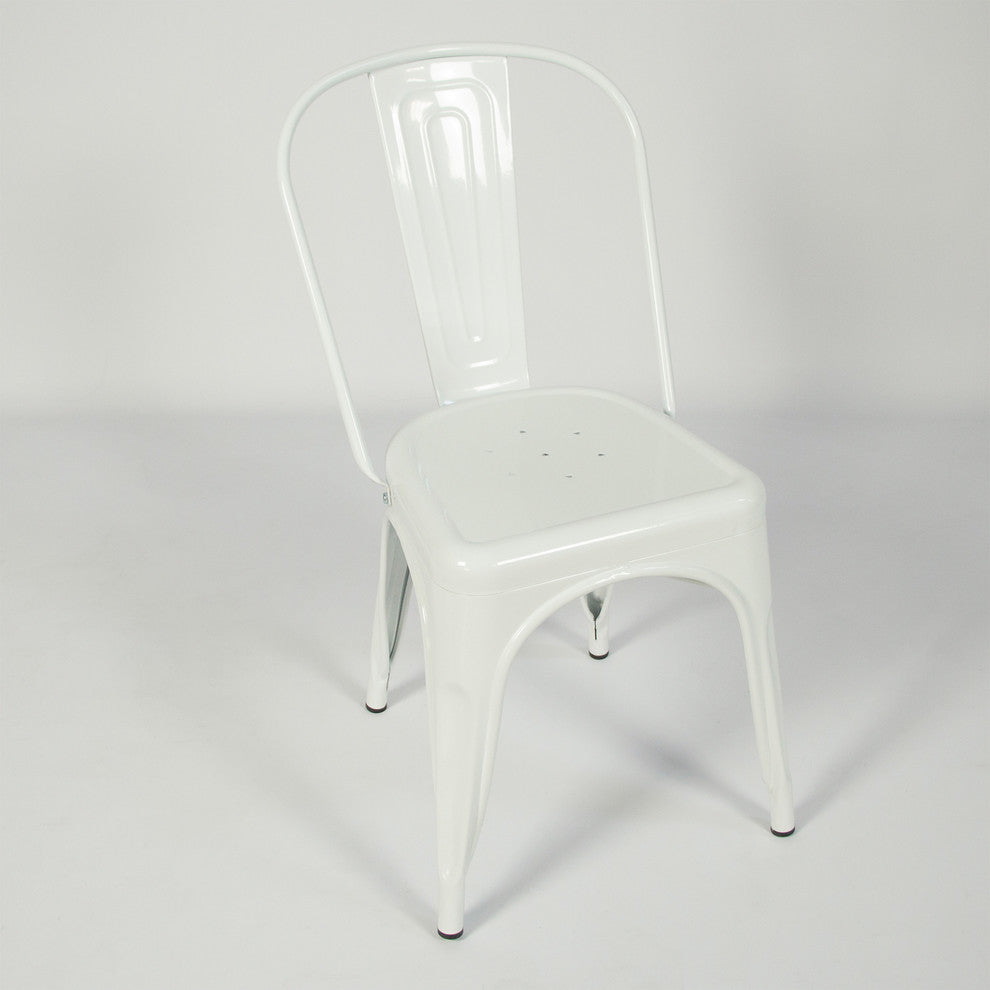 Stackable Industrial Style Metal Bistro Dining Chairs, White, Set of 2