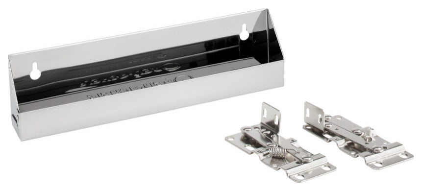 Need storage flexibility around your sink? Add a little luxury to otherwise wasted space with a stainless steel tip-out tray. Perfect for your kitchen or bathroom.-Included: (1) Stainless Steel tray, (1) pair of hinges and mounting hardware-Perfect for otherwise wasted space in your kitchen or bathroom cabinet-Depending on certain sink basins, space could be limited-Requires at least 1-3/4" of clearance between backside of door to front of sink-Stainless Steel trays will not crack, bend, warp o leak-Designed for a cabinet opening width of 12-1/2" or larger-Construction: Heavy Duty stainless steel construction