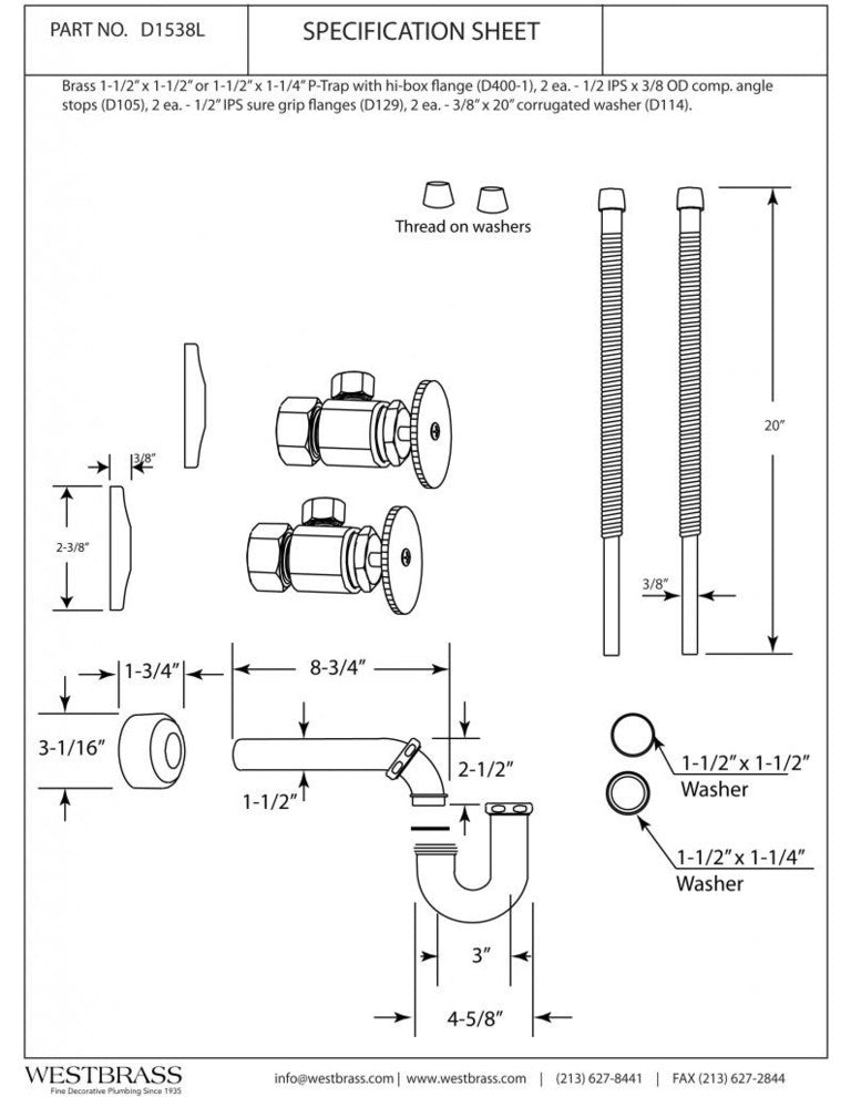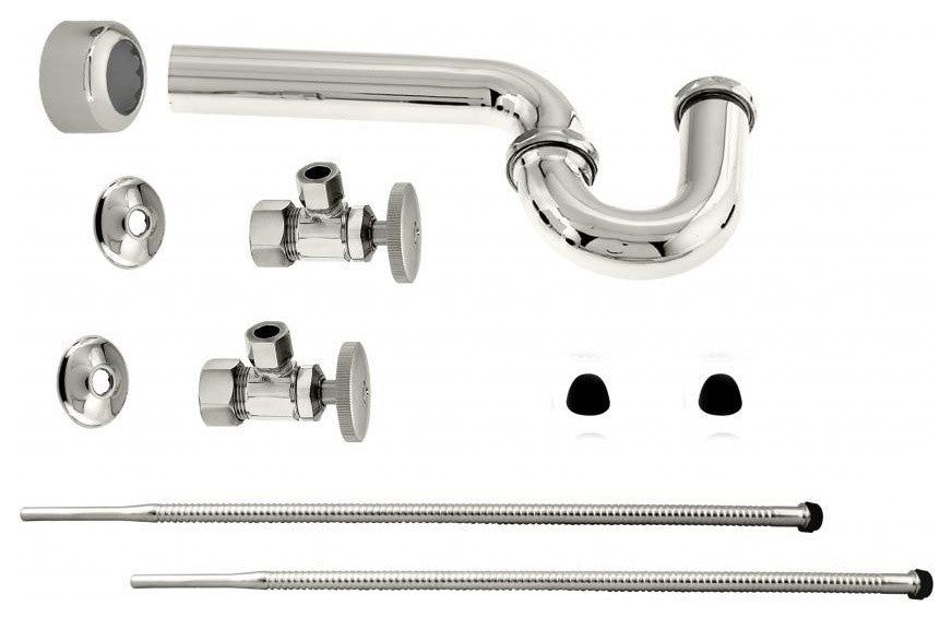 Pedestal Lavatory Kit with Angle Stops, Corrugated Risers, and P-Trap with Flange - Round Handles