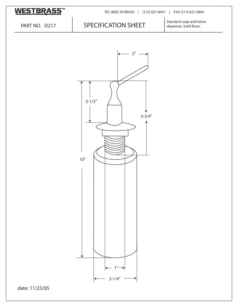 Enjoy style throughout the day with the Westbrass Soap and Lotion Dispenser. This dispenser features durable brass construction and can hold up to 12 oz. for your favorite soap or lotion. Dispenser easily fills from the top of the unit.