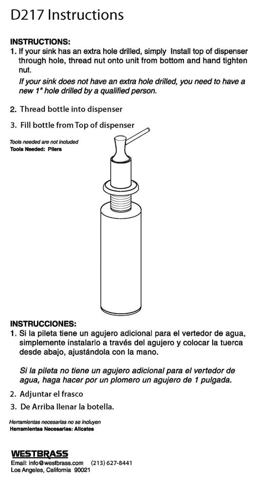 Enjoy style throughout the day with the Westbrass Soap and Lotion Dispenser. This dispenser features durable brass construction and can hold up to 12 oz. for your favorite soap or lotion. Dispenser easily fills from the top of the unit.