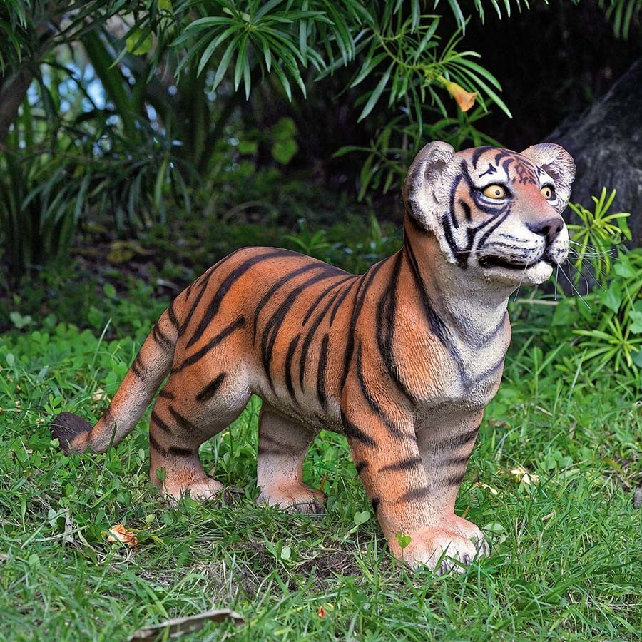 This adorable tiger cub adds an exotic touch to your home or garden! With characteristically fierce beauty, this tiger is amazingly detailed, cast in quality designer resin, and hand-painted with thick black stripes that capture every nuance. This playful feline is sure to turn heads! 34"Wx9"Dx18.5"H. 7 lbs.