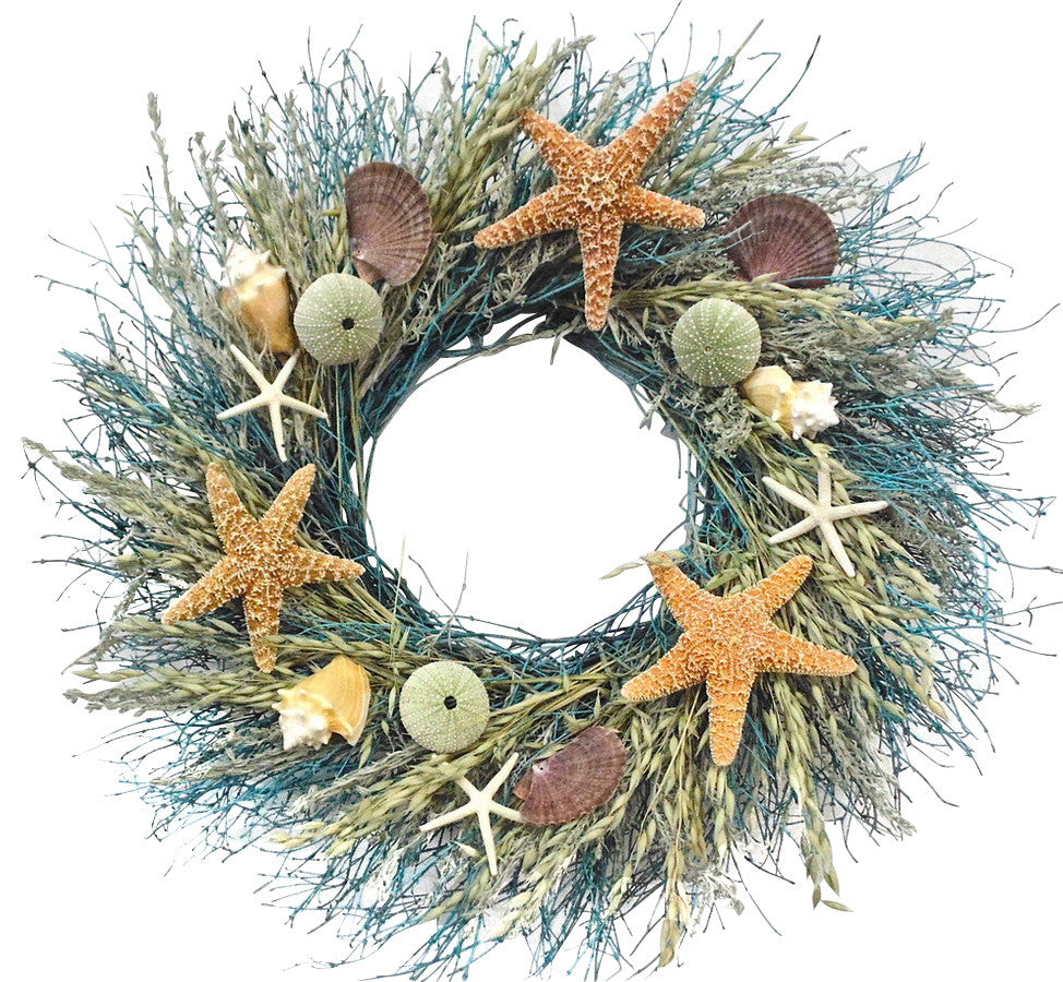 The magical range of the ocean is captured in this loved wreath featuring Sea Urchins, Starfish, and Assorted Shells on a 100% natural base