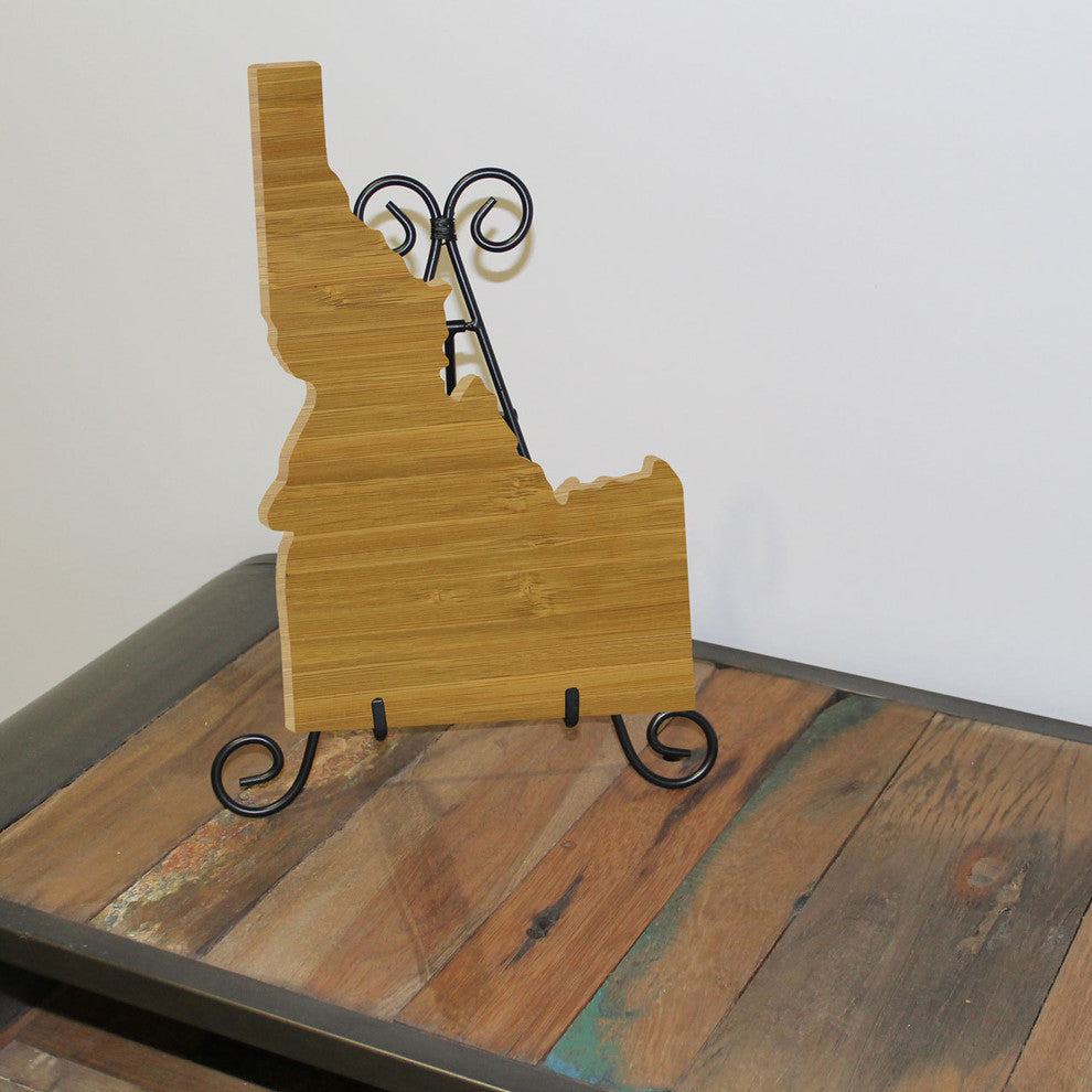 Give a state as a great gift for any occassion. We offer the shapes in both our high temp material and our natural and amber bamboo materials. Size: Each state is roughly 10" x 14", depending on the actual shape of the state. Material: Brown richlite, black richlite, amber bamboo, natural bambooCare and Maintenance: The DuraTough material can withstand temperatures up to 350 degrees and is extremely durable, but regular care and maintenance will extend the life of your cutting board. The DuraTough material is dishwasher safe. This is a cutting board, not a chopping block. Heavy chopping with a cleaver or knife may damage this board.Bamboo is an environmental friendly material that is best when hand washed. To keep the bamboo from drying out we suggest using food safe mineral oil. Bamboo is an environmental friendly material that is best when hand washed. To keep the bamboo from drying out we suggest using food safe mineral oil.Includes cutting board only. Stands are not included.
