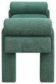 Banish boredom in your room''s decor with this Stefano polyester fabric bench. The perfect bench to rest at the end of your bed in the master suite or in a spot of interest in the foyer or entryway, this lovely art deco seat has loads of room to sit while you pull on boots or take off shoes. The soft green polyester fabric is lovely to the touch, and the rounded arm pillows give it an extra inviting feel.Overall Product Dimensions: 55" W x 19.5" D x 23.5" HSoft Green Polyester FabricRounded Pillow ArmsArt Deco DesignSeat Dimensions: Seat Width: 40"Seat Height: 18"Seat Depth: 17"Arm Height: 23.5"