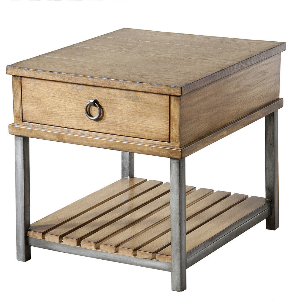 STEIN WORLD 263-021 Beaumont End TableEnd TableCollection: BeaumontFinish: BrownMaterials: Iron, MDF, Solid Wood, VeneerDimension(in): 27(W) x 22.88(L) x 23.88(H)