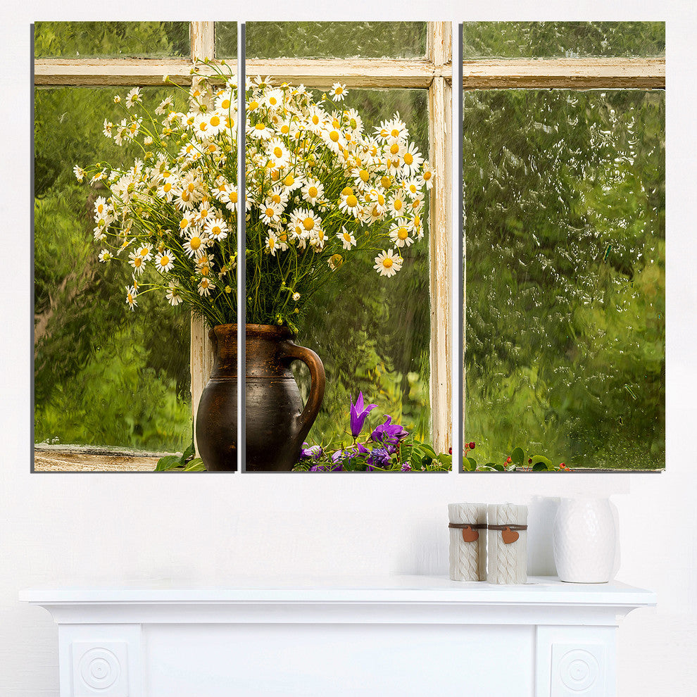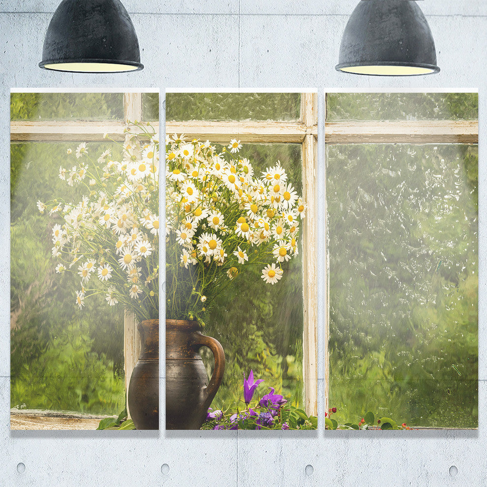 "Still Life Bouquet of Chamomiles" Metal Wall Art, 3 Panels, 36"x28"