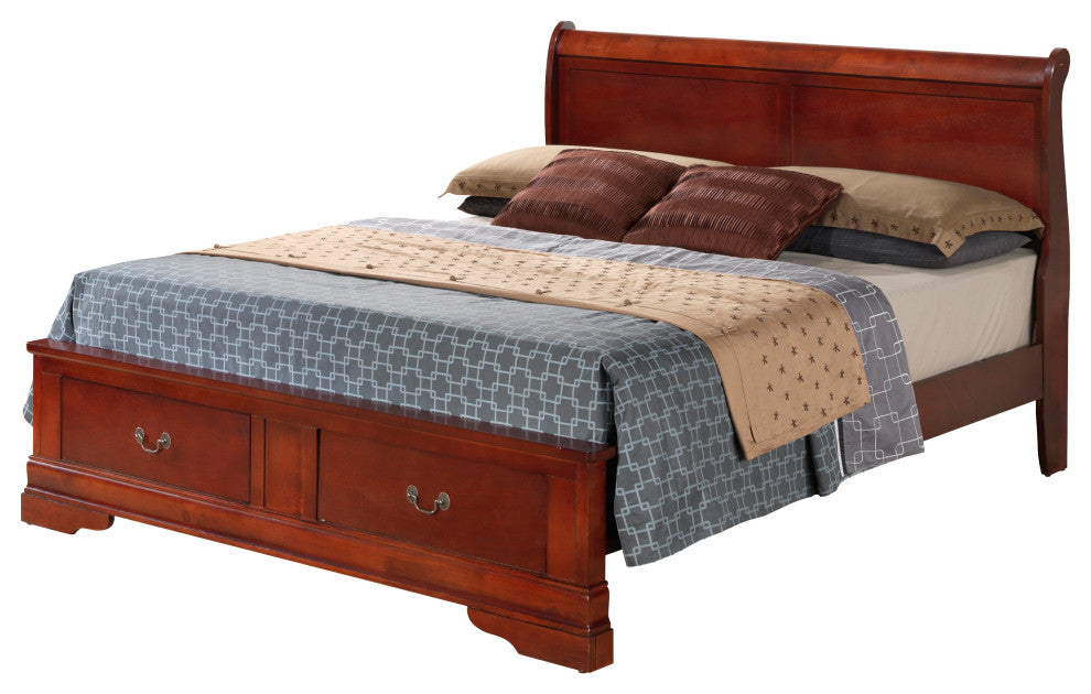 This Classic Design Wood Sleigh Storage Bed Adds Graceful Lines and Styling to Your Bedroom. Also Included are Storage Drawers in the Footboard. Made with Dovetail Joinery you can be assured of Durability and Quality. Available in Twin, Full, Queen and King, it also can be ordered in Many Different Finishes. Matching Dressers, Chests, Nightstands and Mirrors are also Available.