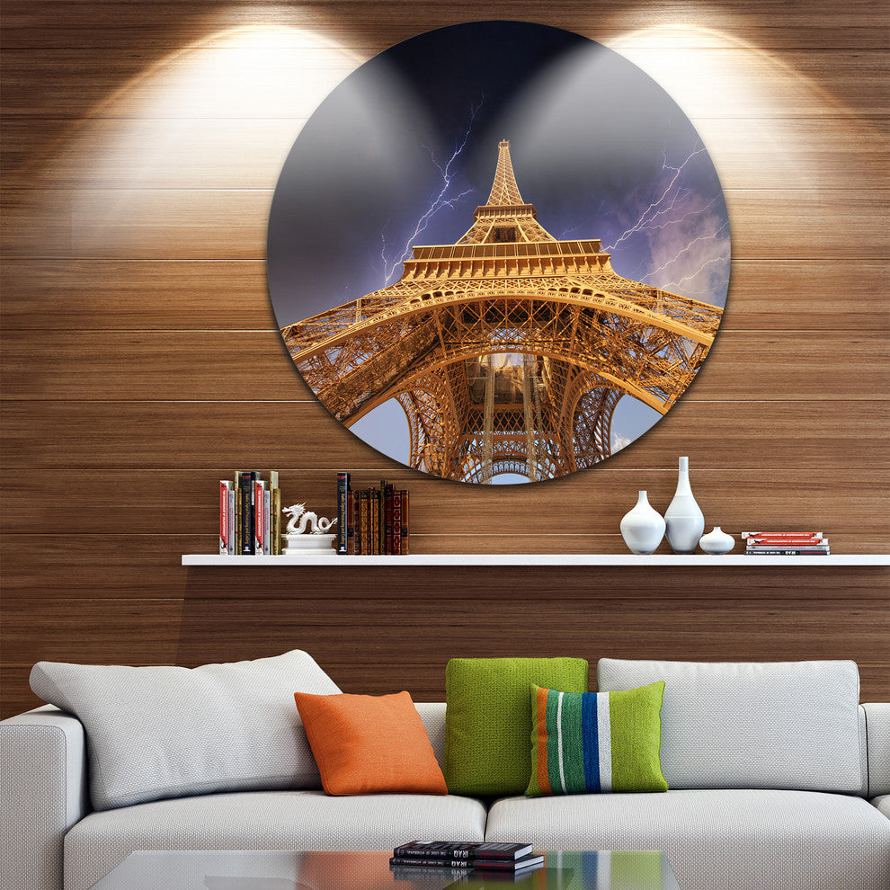 Bring Contemporary Abstraction to your home with this large Circle Metal wall art. This Storm above Paris Eiffel Tower in Paris Metal Artwork makes it the focal point of any room or office.