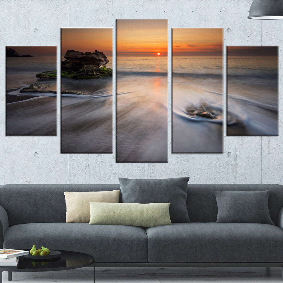 "Stormy Sea With Rushing White Waves" Beach Canvas Wall Art, 5 Panels, 60"x32"