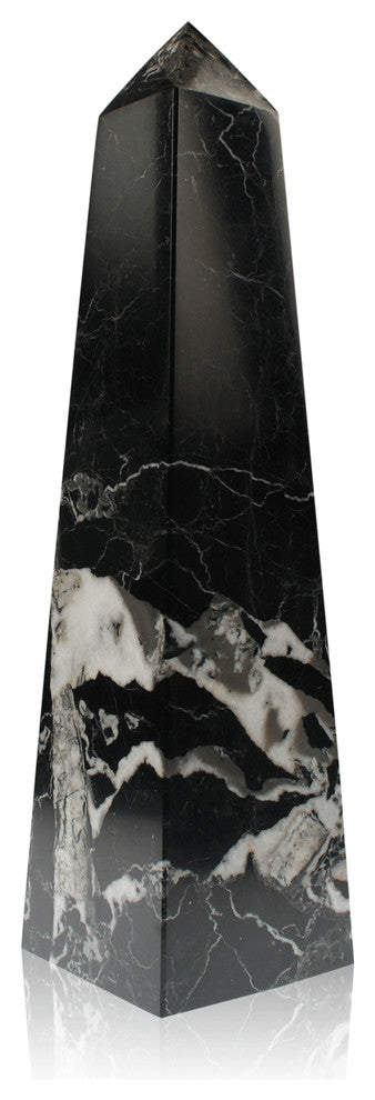 These are all natural stones of various types of marble and onyx, each one unique and cut to showcase the natural beauty of the material. The veins, striation and exact shade of every item will vary, enhancing the allure of such a wonderful work. Each obelisk is carved from a single solid piece of stone.