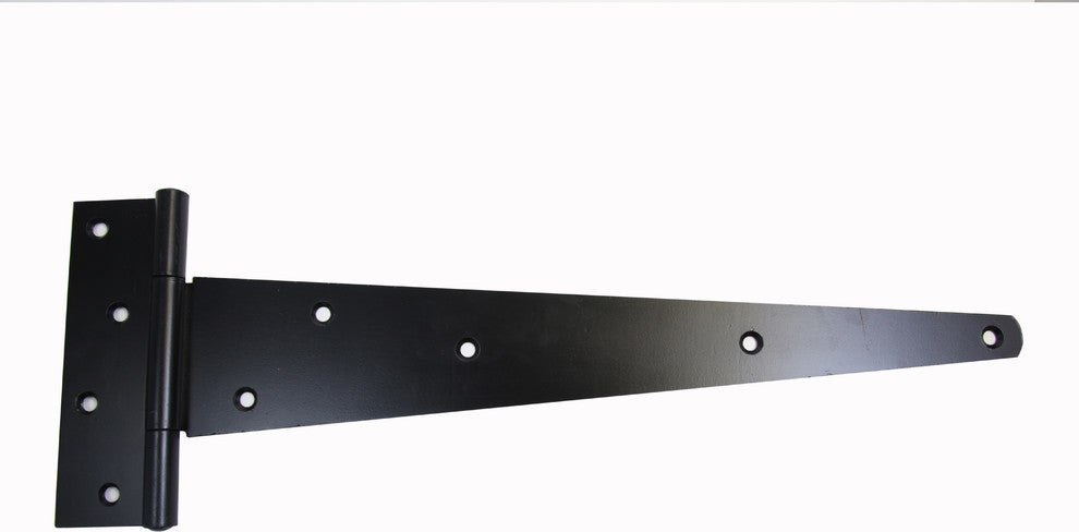 Traditional Style Heavy Duty Hinge Designed for wood Gates. Premium shell finish: Hot Dipped Galvanized plus Black Polyester Powder Coating for rust resistance. Stainless Steel Fasteners included with Hot dipped Galvanized Hardware. Basic Heavy Duty Hinge for wood Gates. Overall length: 26 1/8 in.Strap width at hinge: 3 in.Length of pin: 6 in.Width of pad: 2 in.Thickness of steel: 1/8 in.Comes with #12 x 2" countersunk screws
