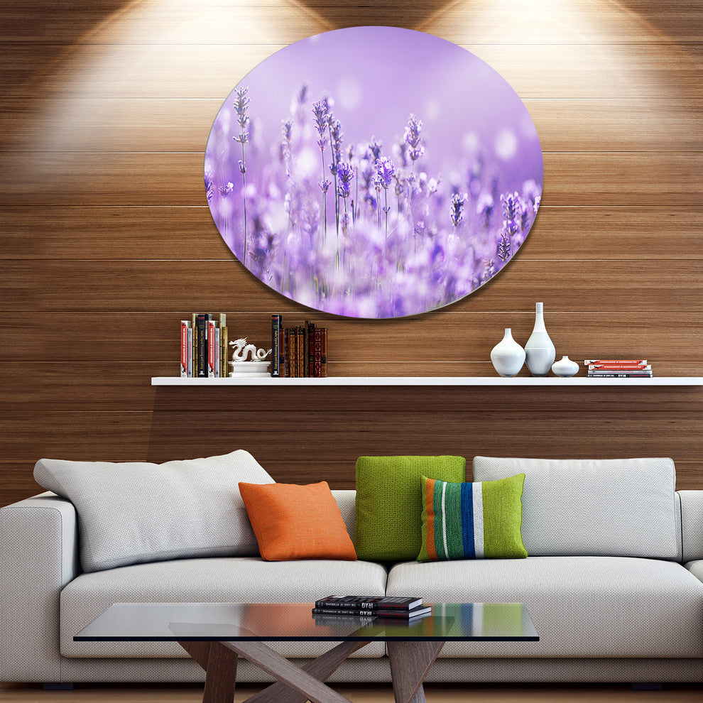Bring Contemporary Abstraction to your home with this large Circle Metal wall art. This Stunning Purple Lavender Field Metal Artwork makes it the focal point of any room or office.