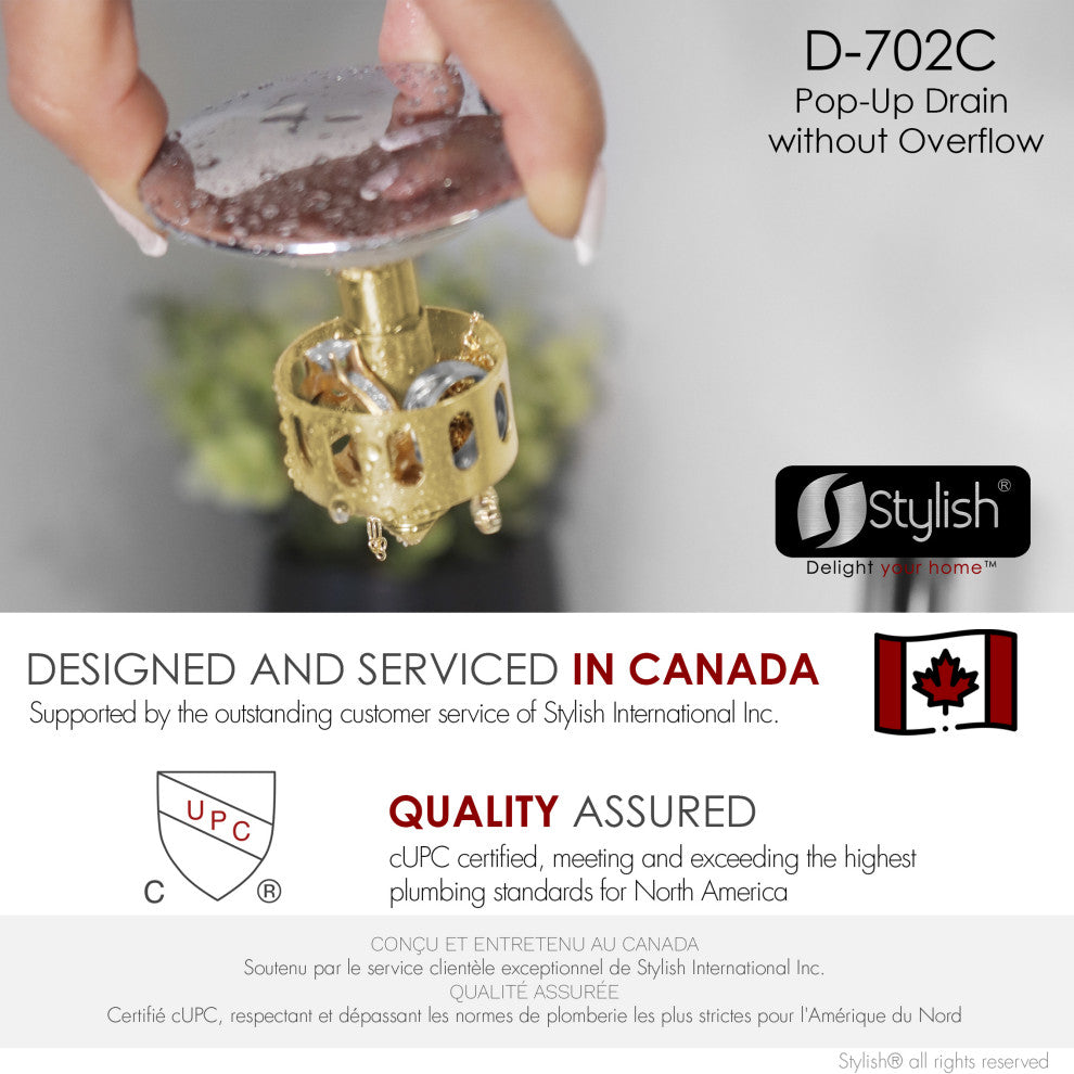 STYLISH Polished Chrome Pop-Up Bathroom Sink Drain without Overflow