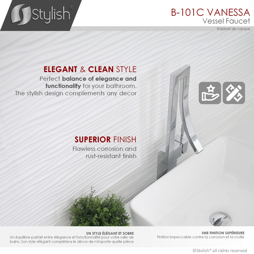 Add equilibrium and elegance to your bathroom with the beautiful single handle vessel sink bathroom faucet. This vessel sink faucet features ceramic disc cartridges and solid brass construction for longevity and watertight functionality. Featuring polished chrome and matte black finishes. This bathroom sink faucet is made using top-quality components, including a ceramic cartridge for reliable drip-free use and a best-in-industry aerator to reduce water waste without compromising pressure. Featuring a solid brass construction for longevity and watertight functionality. Designed for a single hole installation, this bathroom faucet fits any vessel or undermount sink as well as standard US and Canada plumbing connections. Durable surface treatment built to resist scratches, corrosion and tarnishing and very easy to clean. This modern basin water tap is easy to install and comes with installation instructions, all mounting hardware and hot-cold waterlines included. The modern appearance of this single handle bathroom faucet will transform your bathroom into a stylish oasis. Features:ELEGANT AND STYLISH: The rounded edges with and the contemporary flare make this faucet the perfect addition to your new bathroom. Water flows creating a waterfall effect when water is running. Features ceramic disc valve for longevity and watertight functionality. AGAINST CORROSION MATERIAL: Solid brass construction for maximum durability bathroom faucet. PRODUCT DIMENSIONS: Faucet height: 17 ½", Spout height: 8" EASY AND SAFE TO USE: Smooth surface plating not only prevent scratches, but also easy to clean up. Single lever design for effortless flow and temperature control. DURABLE PERFORMANCE: The ceramic disc cartridge can survive 500,000 times open/ close test, ensuring reliable drip-free use. Tested at high water pressure to ensure quality and long durability INCLUDED COMPONENTS: Installation instructions, mounting hardware, hot and cold water hoses. Please check your piping size before order. FAUCET FINISH: Available in polished chrome and matte black. CERAMIC CARTRIDGE: Tested for 500,000 times open-close test. This bathroom faucet will not leak and is proven to reduce water waste without compromising pressure. PREMIUM MATERIAL: Lead free metal construction and made from solid brass. Ensures durability and a long life. Smooth surface plating not only prevent scratches, but it is also easy to clean up.WARRANTY: This product is covered by a Limited Lifetime.