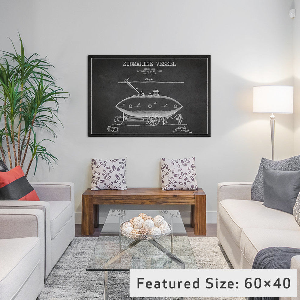 "Submarine Vessel Charcoal Patent Blueprint" by Aged Pixel, 26x18x1.5
