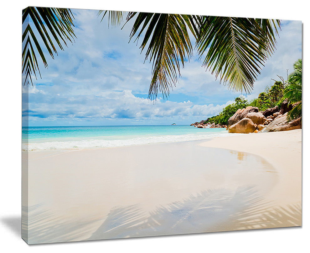 The Summer Beach with Palm Leaves canvas art print is sure to make an impression on anyone who sees it. This artwork is gallery wrapped around a 1-inch solid wood frame and arrives carefully packaged and entirely ready to hang on the wall. Design Art only uses the highest resolution and pigments to ensure a crisp colorful print that is never faded or pixelated. This artwork is sure to be a conversation starter in any home or office.