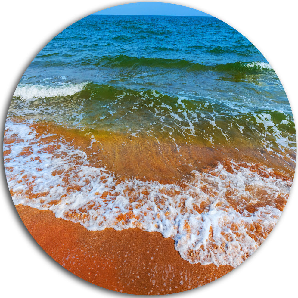 Summer Seashore With White Waves, Modern Beach Round Wall Art, 36"