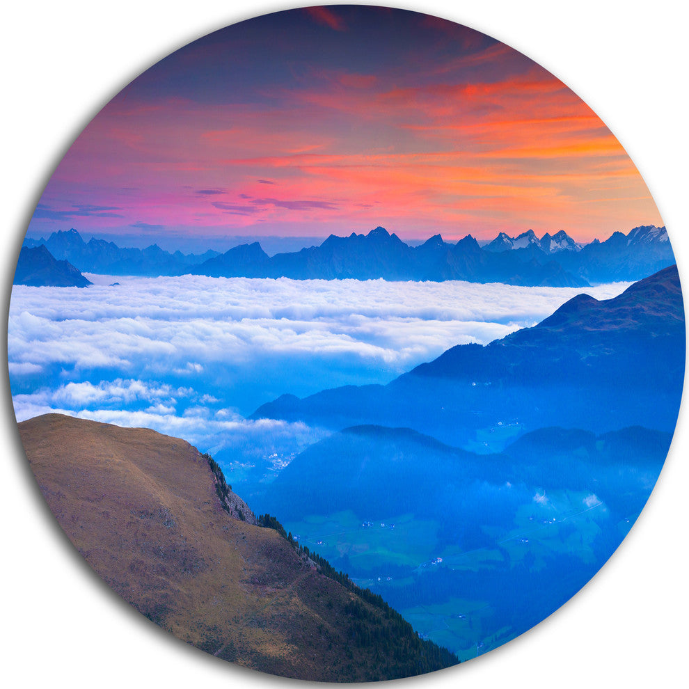 Bring Contemporary Abstraction to your home with this large Circle Metal wall art. This Summer Sunrise in Italian Alps Metal Artwork makes it the focal point of any room or office.