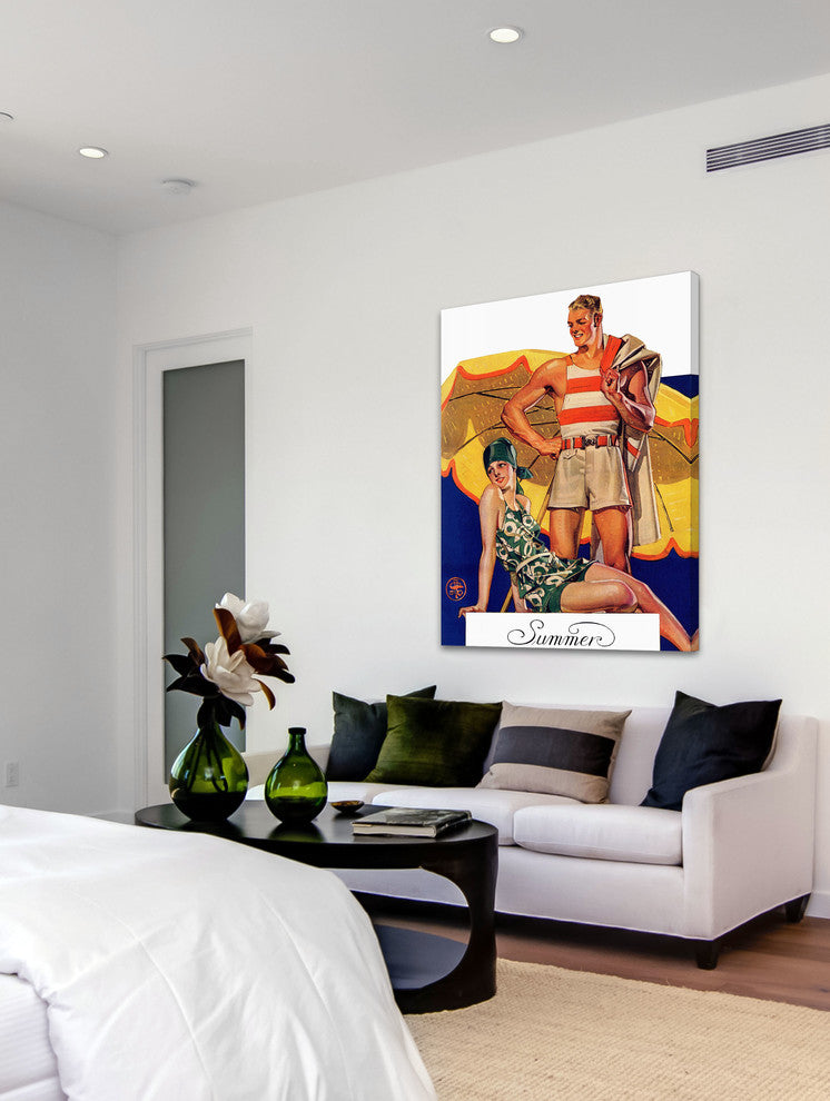 "Summertime, 1927" Painting Print on Canvas by J.C. Leyendecker features vivid tones and supple artistry. Printed on canvas, this 24 inch wide by 31 inch tall piece will be an exceptional addition to any room. Fine art canvas print from the Marmont Hill Art Collective Professionally hand stretched Gallery wrapped in sustainable, non-warping wood Arrives ready to hang Made in the USA Includes a certificate of authenticity