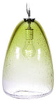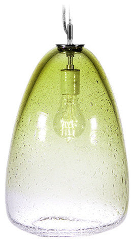 Illuminate your environment with this contemporary twist on a classic shape. Featuring seeded hand blown glass, the Summit artisanal lighting pendant is available in an assortment of decorator colors to complement your home. 8" W X 14" H; 5" canopy. 60w; 120v. Edison-style filament bulb included. Ships with 6 ft. of electrical cord. Made to order.