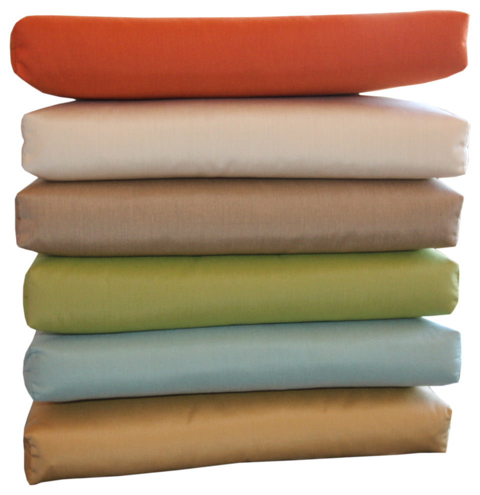 Your outdoor lounging just got a whole lot more cushy thanks to the Sunbrella Designer seat cushions. These plush accents add a layer of comfort to your patio furniture, as well as a dose of contemporary fashion with their clean lines and black coloring. Crafted of all-weather fabric and quick-drying foam, the Sunbrella Designer cushions continue to dress your patio in style — and look good doing it — season after season.Set of 2 cushionsAll-weather fabric repels water and resists chlorine, soil and stainsMade in the USAExtreme tested for resistance to fading, staining and mildewQuick-drying foam coreCushions secure with fabric tiesZippered for easy cleaningMachine washableRinse clean with hose and mild cleanerSpot clean with mild natural soap and warm waterAir dry onlyColor: BlackMaterial: Sunbrella fabricDimensions: W 20" x D 18" x H 3"