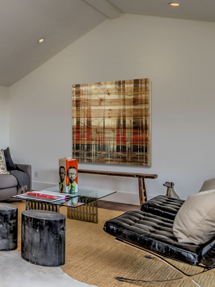 "Sunlight Through the Trunks" Print on Natural Pine Wood, 24"x24"