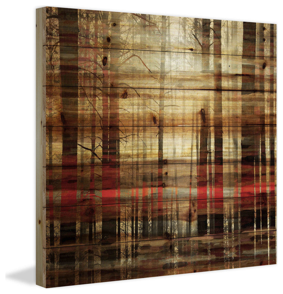 Striking and unique, the "Sunlight Through the Trunks" Print on Natural Pine Wood by Parvez Taj will bring your walls to life. Printed on natural pine wood, this 24 inch wide by 24 inch tall contemporary artwork will make a statement in any living room, dining room, or bedroom.- Fine art print on natural pine by Parvez Taj- wood pieces are hand-selected by Fine craftsmen for printing- Arrives ready to hang- Includes a certificate of authenticity- Artist signature on the front