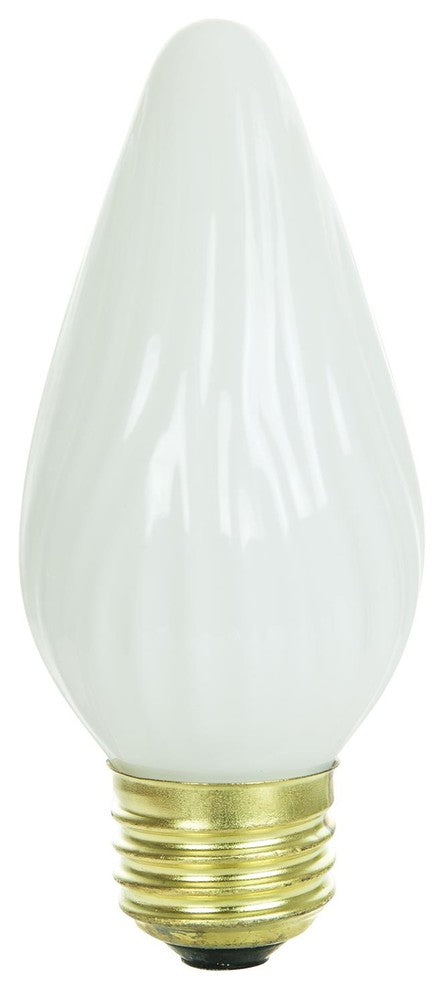 Sunlite, 25 watt incandescent medium based flame twist bulb works with most 120 volt lighting fixtures, will provide 150 lumens of light output, and will last for an average of 0.9 years. This bulb features a white finish that provides a comfortable soft glow. Incandescent lighting is commonly used for decorative, office, residential, commercial and special purpose lamps. These bulbs are also great for decorative and special purpose lighting applications.