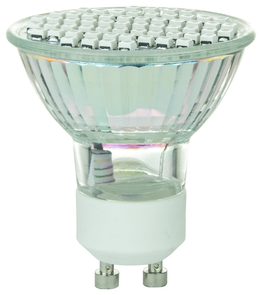 Sunlite LED MR16 lamps are extremely energy efficient and will help get your monthly energy costs down to their bare minimum. These lamps can last up to fifteen times longer than there halogen counterparts thereby reducing the hassle of replacements. Sunlite LED lamps do not release any hazardous gasses, so by using these lamps you get to do a little more to protect our environment. You wont lose out on light output or ambiance either; Sunlite LED bulbs deliver a high lumens-per-watt ratio and produce a bright, crisp light in a variety of colors.;This Sunlite 120 volt, 2.8 watt, MR16 type LED provides a strong light output using 60 Led''s. It features a gu-10 base and can last up to 30,000 hours. It produces a brilliant green light. The Sunlite MR16/60LED/2.8W/GU10/120V/G LED lamp lasts long, reduces energy costs and can fit right into your home application or into the most cutting-edge, state of the art lighting design project.
