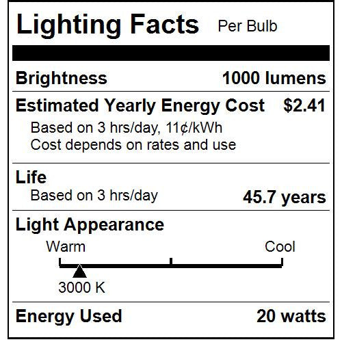 With a lumen output of 1000 and a kelvin temperature of 3000K, you are guaranteed to get the best possible lighting for your needs