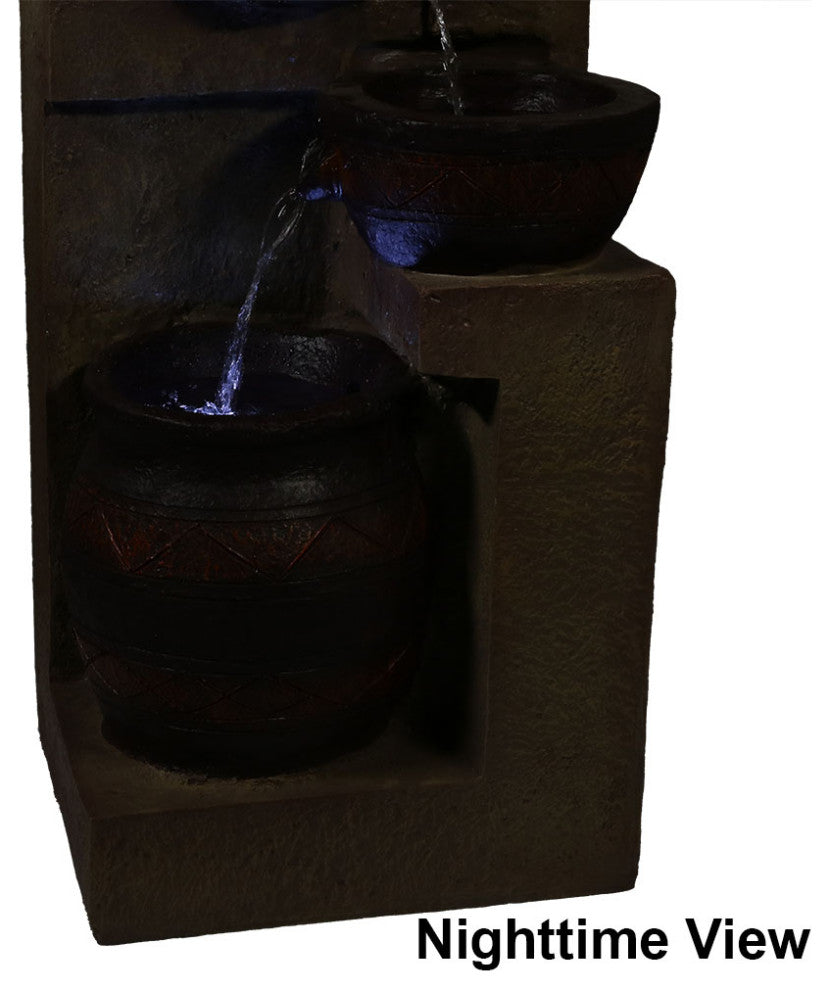 Sunnydaze Cascading Terra Bowls Solar-on-Demand Water Fountain With LED Light