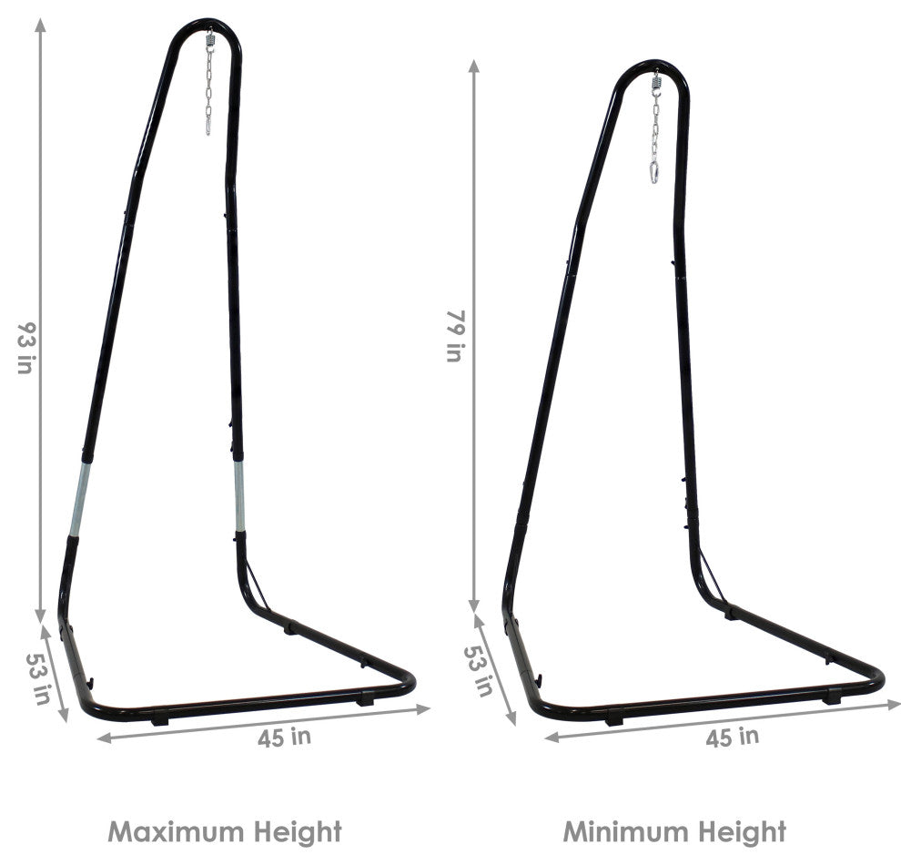 Add comfortable seating to the garden, yard or patio space with this sumptuous hammock chair and adjustable stand set. Featuring natural toned hues, and a soft, yet flexible 80% cotton and 20% nylon design, this hammock is both durable and comforting. Plus, each hammock chair is handmade, so color will vary from hammock chair to hammock chair. The included stand features an arch shape and powder-coated tubular steel construction and durable plastic stabilizing feet. Plus, it is height adjustable from 79" tall to 93" tall which makes it easy to hang the hammock swing from it at a comfortable height.