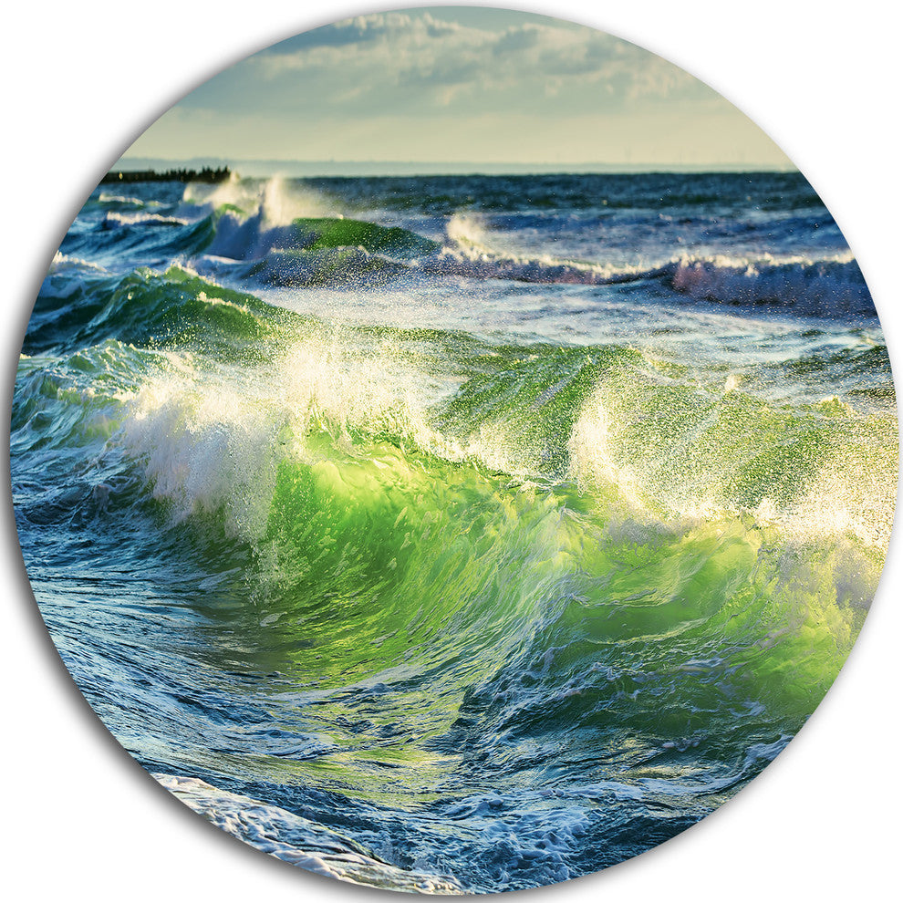 Sunrise And Shining Waves In Ocean, Beach Round Wall Art, 11"