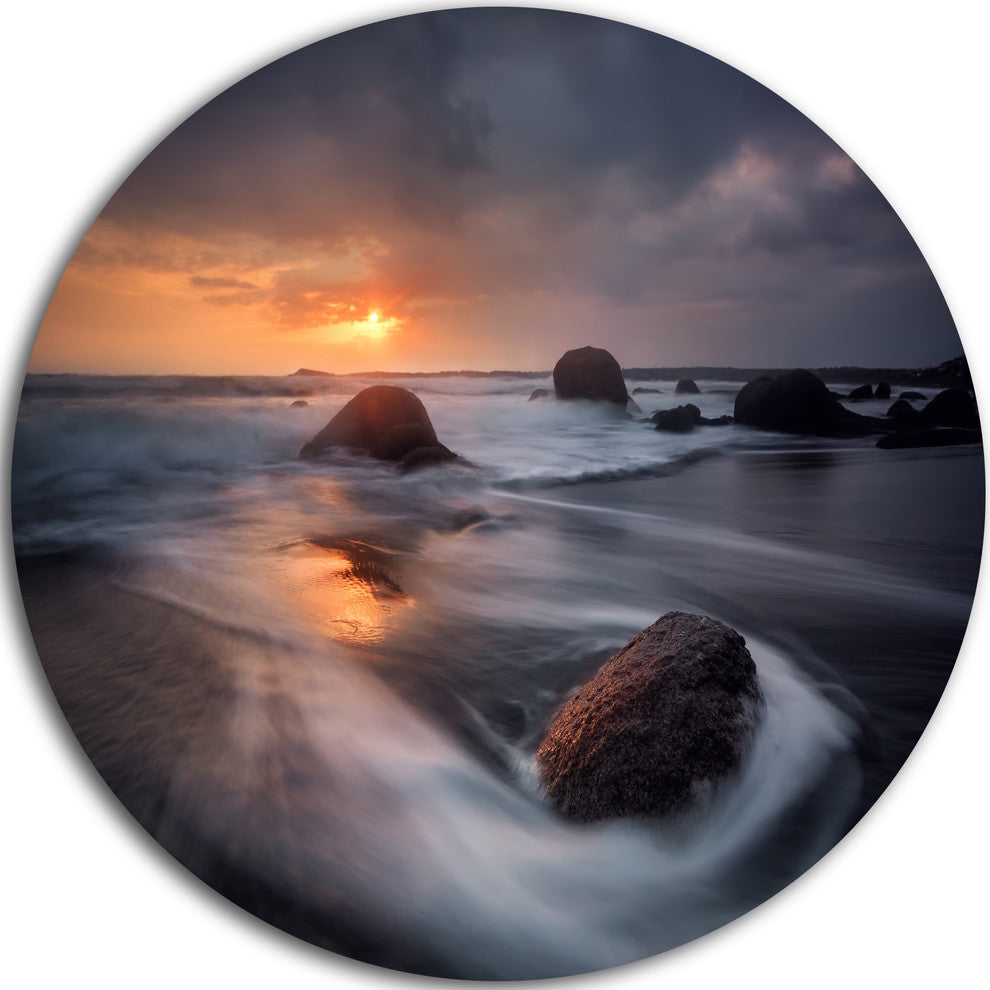 Bring Contemporary Abstraction to your home with this large Circle Metal wall art. This Sunrise in Burgas Bay near Atia Metal Artwork makes it the focal point of any room or office.