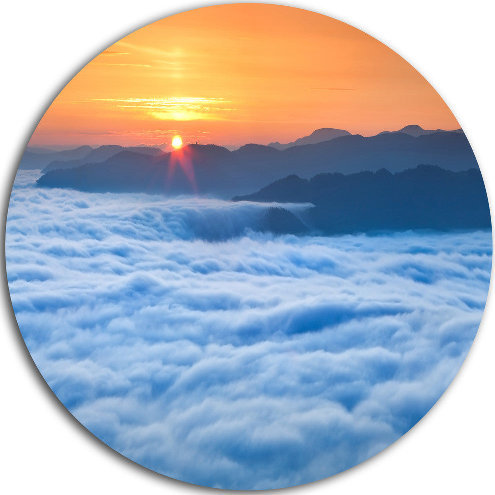 Bring Contemporary Abstraction to your home with this large Circle Metal wall art. This Sunrise Over Misty Sea Waters Metal Artwork makes it the focal point of any room or office.
