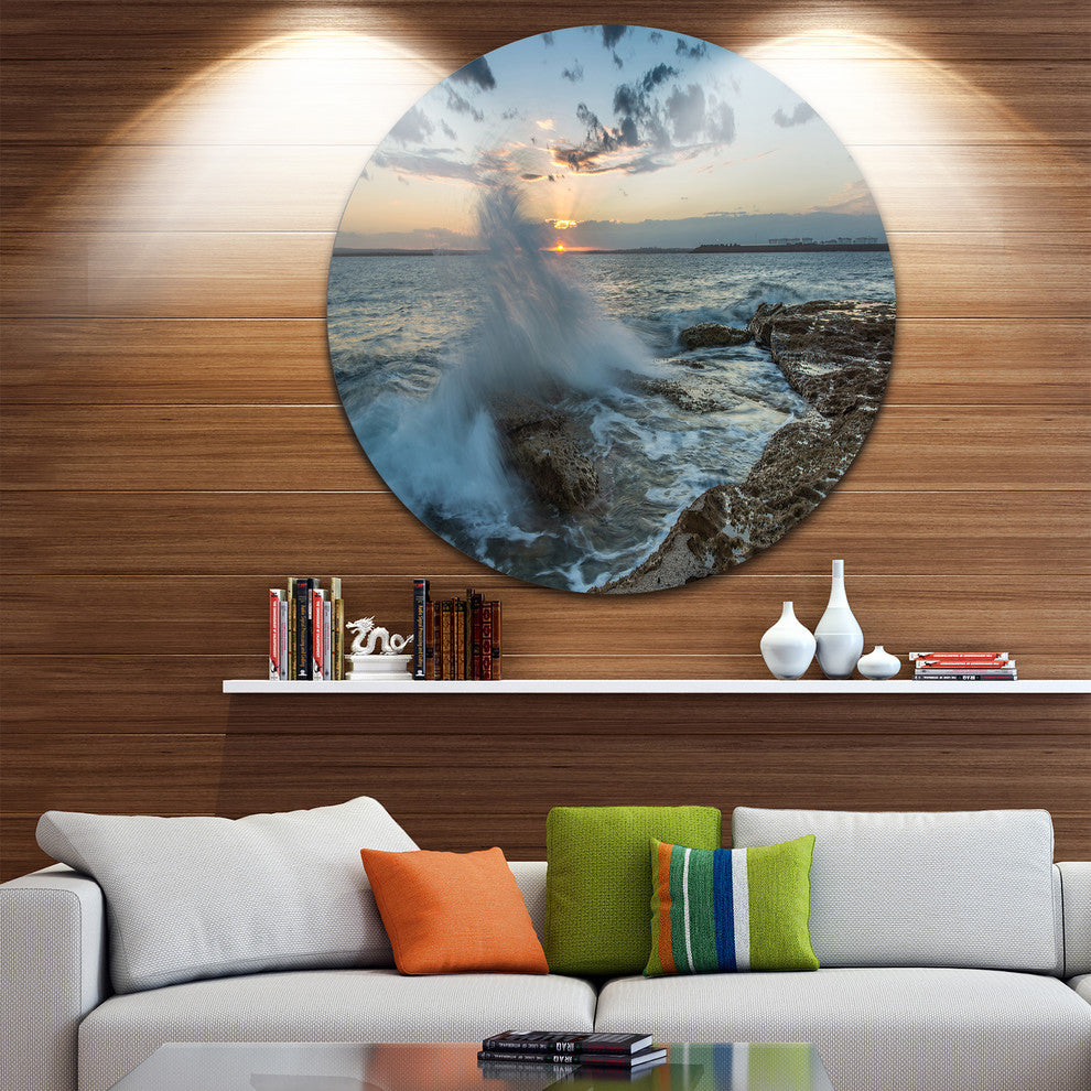 Bring Contemporary Abstraction to your home with this large Circle Metal wall art. This Sunset at Sydney Seashore Metal Artwork makes it the focal point of any room or office.