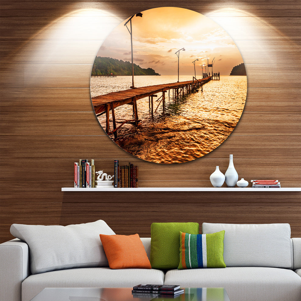 Sunset Over Brown Sea, Seascape Photo Large Disc Metal Wall Art, 23"