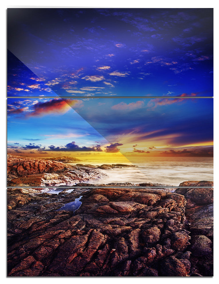 "Sunset Over the Ocean" Photography Metal Wall Art, 3 Panels, 28"x36"
