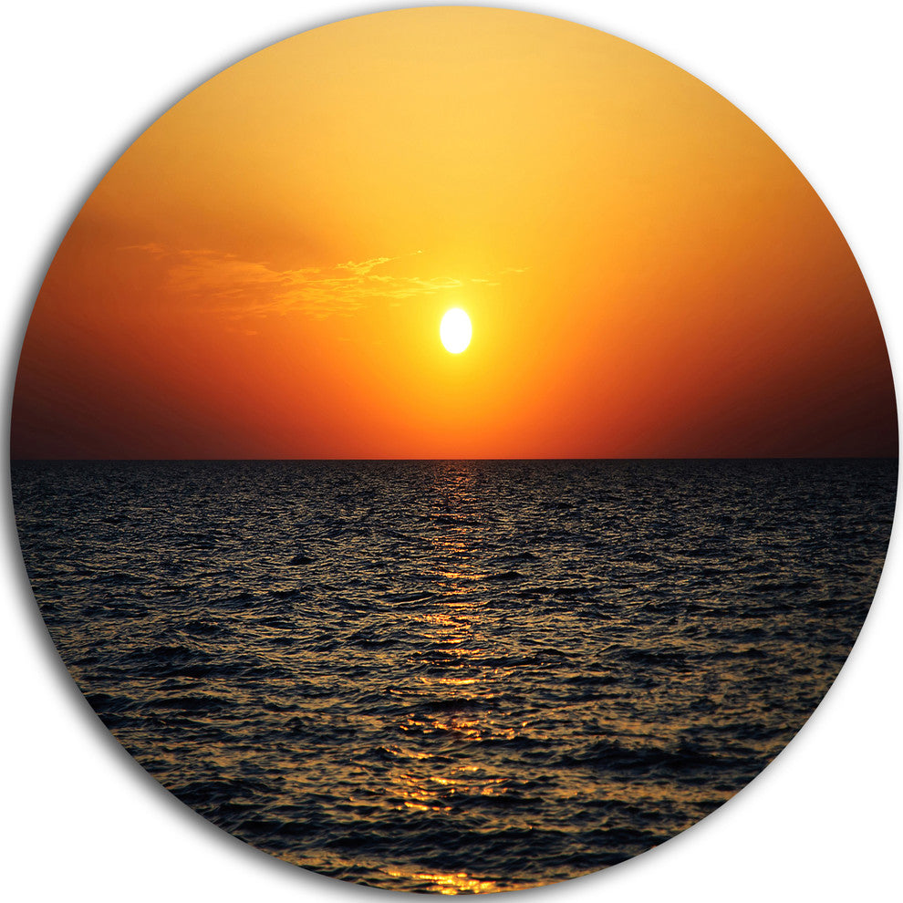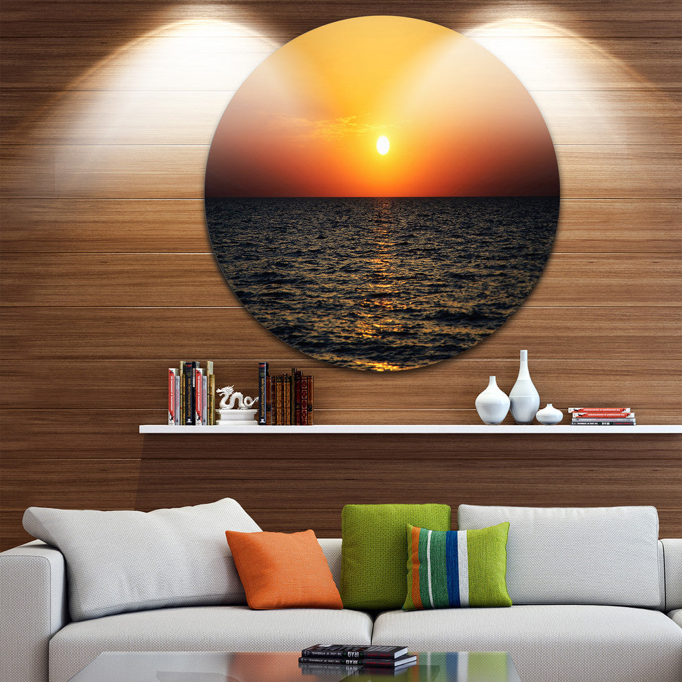 Bring Contemporary Abstraction to your home with this large Circle Metal wall art. This Sunset Panorama under Sea Surface Metal Artwork makes it the focal point of any room or office.