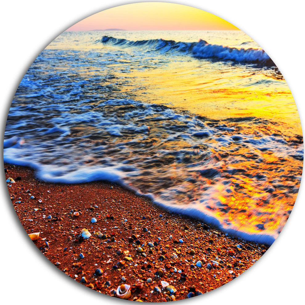 Sunset Reflecting In Blue Waves, Seashore Round Wall Art, 36"