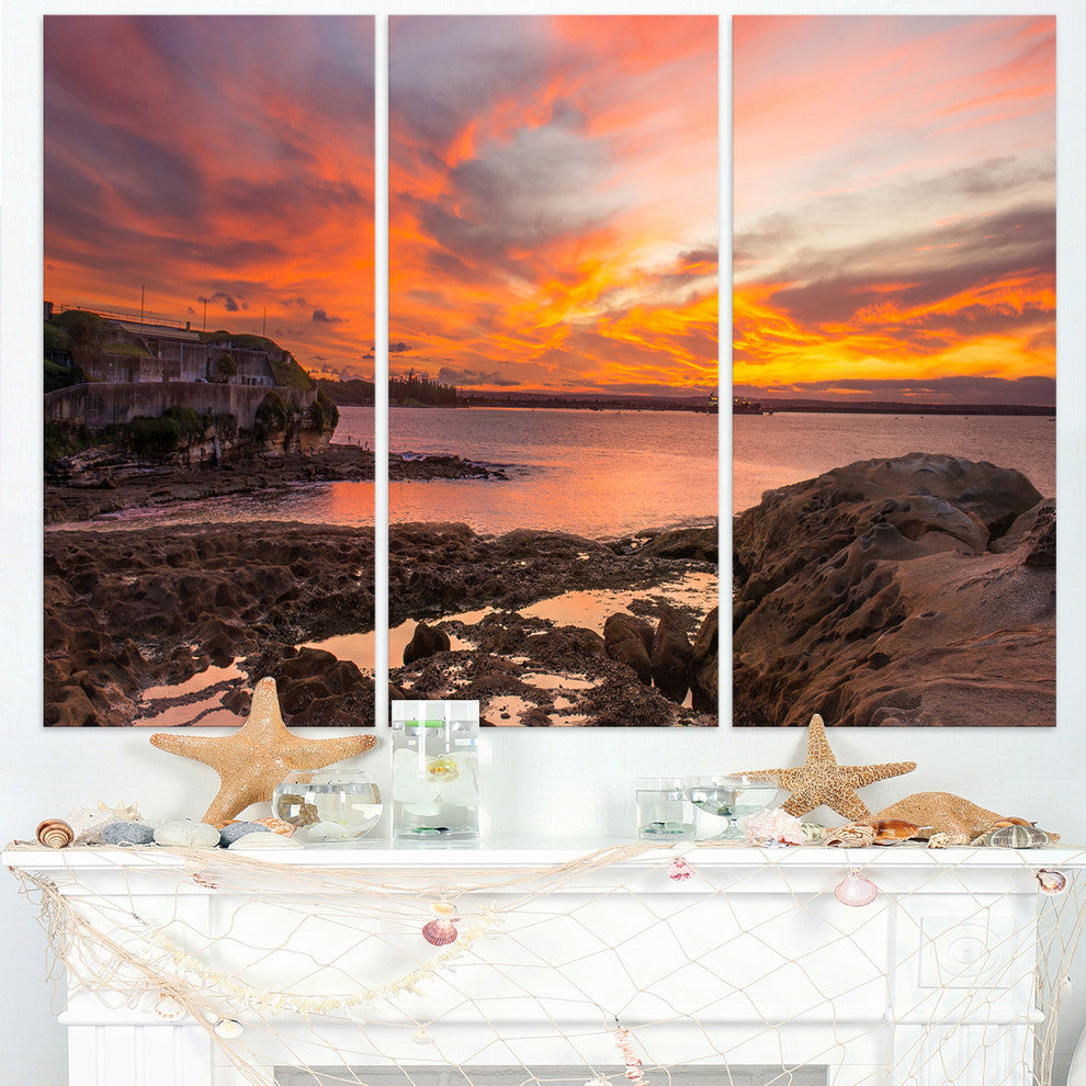 "Sunset Sky Panoramic Sydney View" Metal Wall Art, 3 Panels, 36"x28"