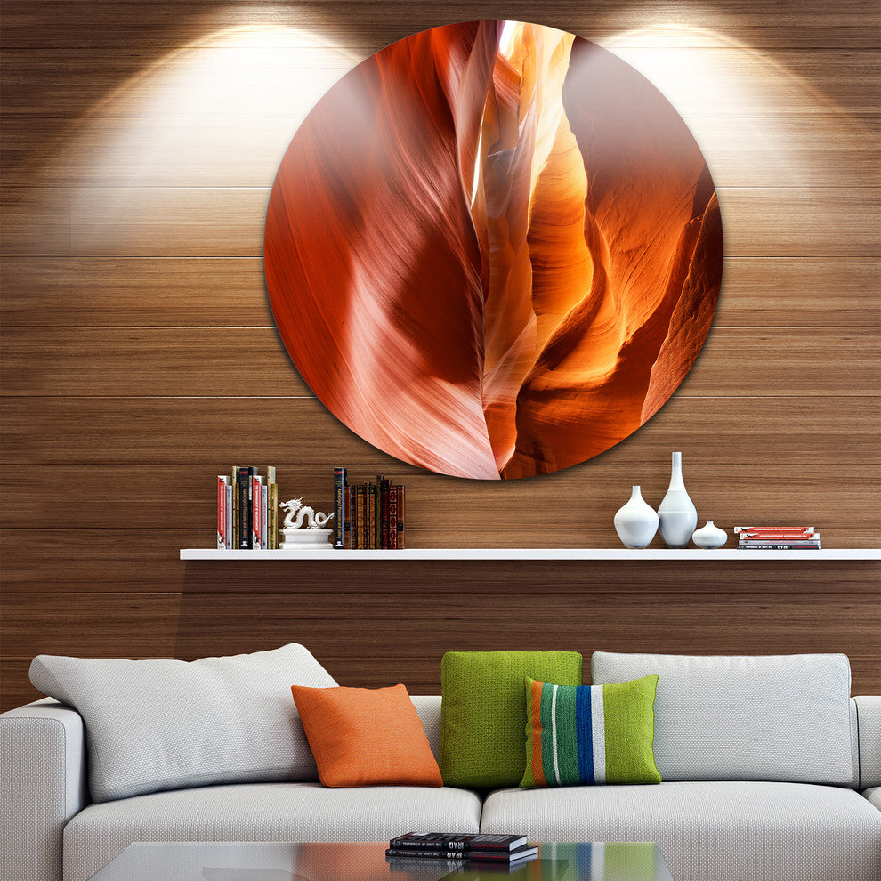 Bring Contemporary Abstraction to your home with this large Circle Metal wall art. This Sunshine in Antelope Canyon Metal Artwork makes it the focal point of any room or office.