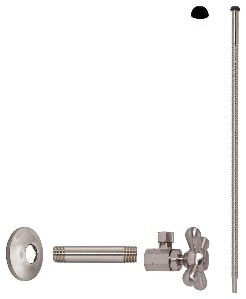 This Angle Stop Kit with Cross Handle is the perfect compliment for sinks and toilets. It uses a 1/2 in. IPS threaded Inlet with a 3/8 in. OD Compression outlet with nut and ferrule. The kit features a 20 in. corrugated riser with seals for sink or water closet. The valve uses traditional compression closure for positive seal. It is available in a variety of finishes.