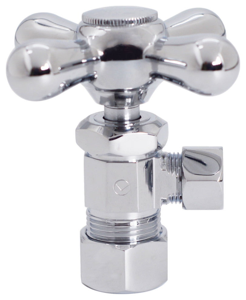 This Angle Stop Kit with Cross Handle is the perfect compliment for sinks and toilets. It uses a 5/8 in. Compression Inlet (For 1/2 in. Copper pipe) with a 3/8 in. OD Compression outlet with nut and ferrule. The kit features a 15 in. corrugated riser with seals for sink or water closet. The valve uses traditional compression closure for positive seal. It is available in a variety of finishes.
