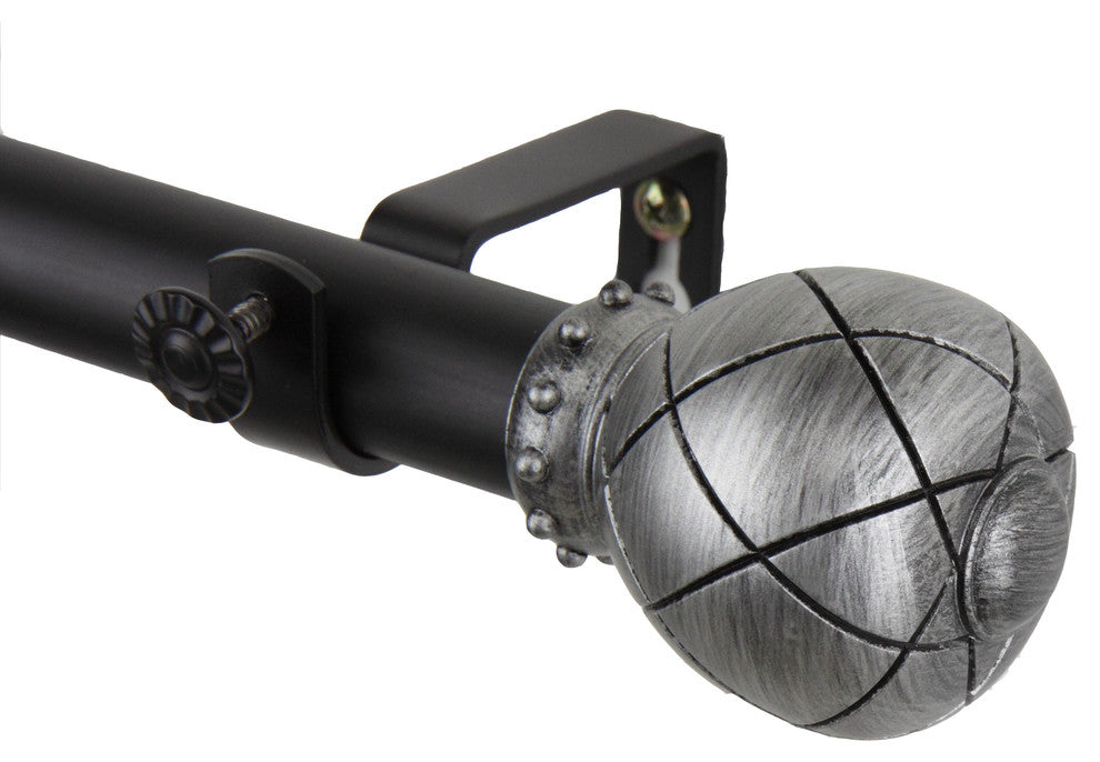 Decorate your window with this Rod Desyne Supreme Curtain Rod. This rod is made of solid steel pole while lends a sophiscated touch and finished appeal to your window treatment, regardless of room or drapery style. Features:Includes one 1 inch diameter high quality steel telescoping pole, extends 66-120 inch, 3 brackets and 2 finialsEach Supreme finial measures W 2-5/8 inches x H 2-1/4 inches x D 2-1/4 inchesProjection: 3.625"